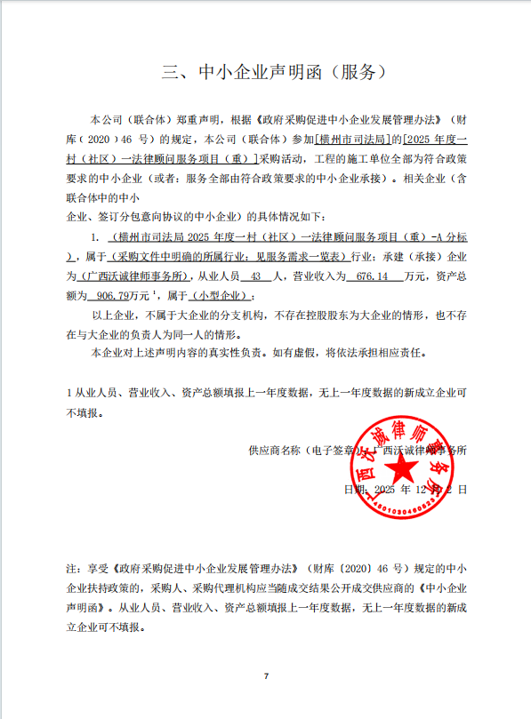 二、项目名称:横州市司法局2025年度一村(社区)一法律顾问服务项目(重)