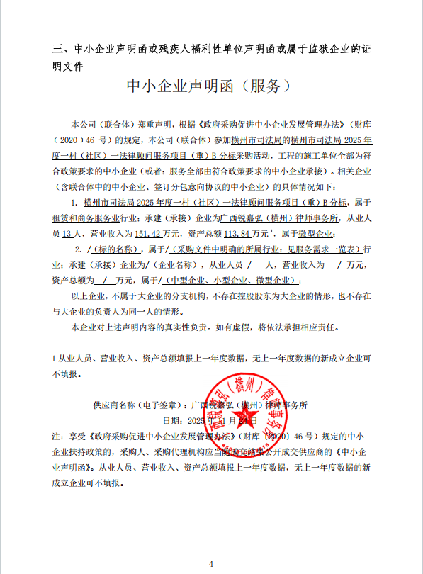 2横州市司法局横州市南乡镇、马岭镇共33个村(社区)法律顾问服务横州市南乡镇、马岭镇共33个村(社区)法律顾问服务详见竞争性磋商文件详见竞争性磋商文件自签订合同之日起,开展为期12个月的法律服务。详见竞争性磋商文件
